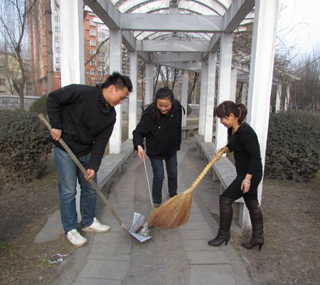 路義務打掃街道衛生,清洗街道護欄,并對就近的公交站點進行了擦洗。
